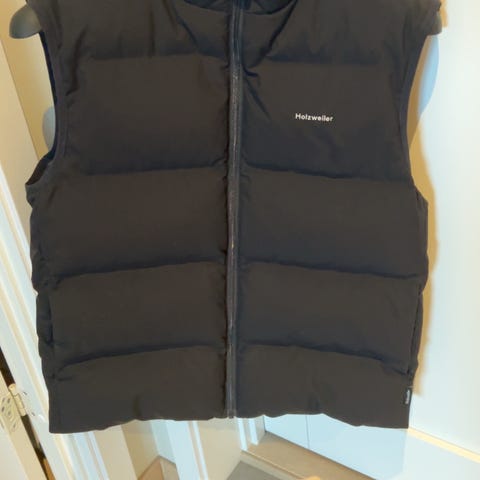 Holzweiler Vest i dun, svart farge, størrelse S for kvinner. Vesten er cropped og så kul!