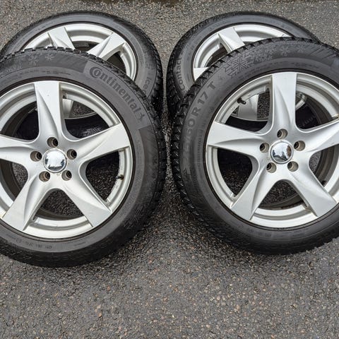 Alufelger felger med brukte piggdekk. Er produsert slutten av 2017, men er fremdeles godt brukbare/ myke. En felg har noen riper.