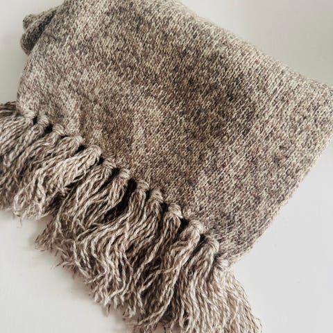Skjerf er laget etter mønster fra Bystrikk i 100 % merinoull. Ca 130 cm lange og 8- 10 cm brede.