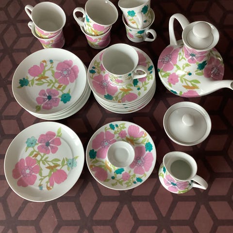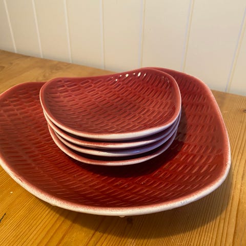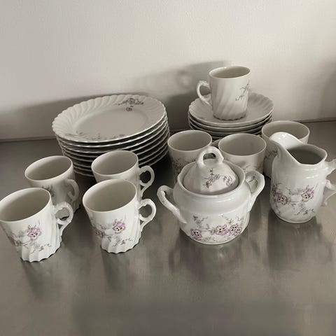 4 kopper og 5 asjetter fra Graveren selges. Blå nyanser. Hele og pene deler.