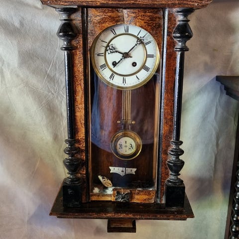 Gustav Becker veggur. Del av toppen har falt av. H: 100 cm. D: 17 cm. B: 40 cm.