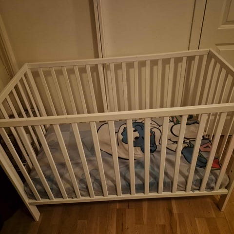 Selger en sprinkelseng i god stand. Kommer med madrass 120x60.. Lite brukt, men det finnes noen små riper/lekmerker, ingenting som påvirker funksjon eller sikkerhet.