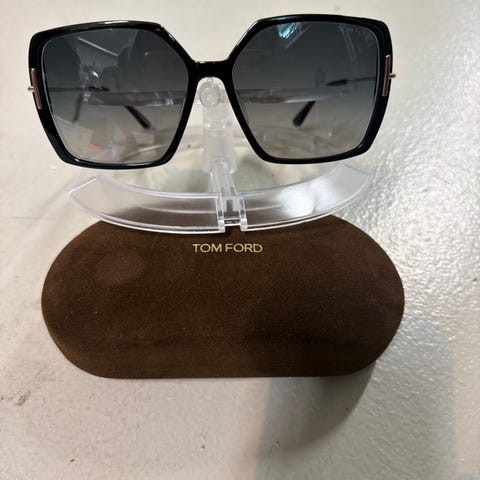 Grønn linse og bronse ramme. Leveres med etui og myk pose for oppbevaring.