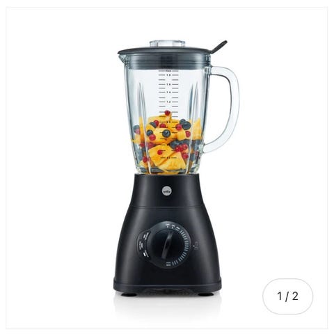 Kraftig blender på 1400 Watt som rommer 1500 ml. Den har bare blitt brukt noen få ganger til å lage smoothier, noe den har klart utrolig bra!