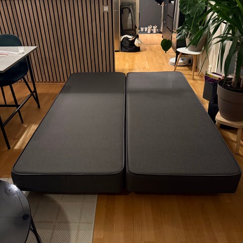 Selger en god seng fra jysk, vil si den et medium/myk i fasthet. Noen bruksmerker, men trekket kan tas av og vaskes. Ferdig demontert.