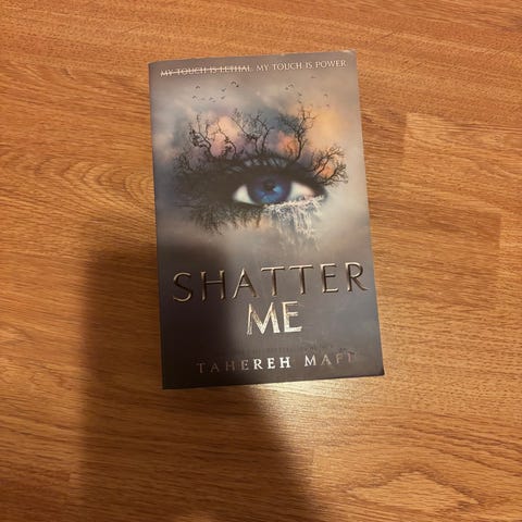 Tahereh Mafi, Shatter Me. Første bok i shatter me serien. Boka er på engelsk og ikkje lest, heilt som ny uten noken merker.