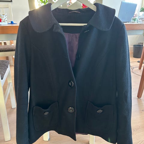 Sort kåpe i ullblanding fra Noa Noa med flotte detaljer.