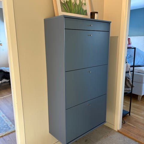 Monteres med dobbelsidet tape så ingen borring eller skruing i vegg!
