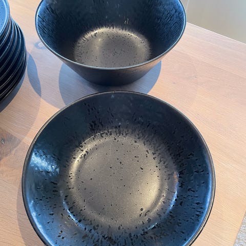 (90kr pr tallerken, unntatt 2 med små skår - de er 50kr pr stk. Har bruksmerker etter bestikk, men ellers god stand. Bilde av de med skår ligger til slutt)