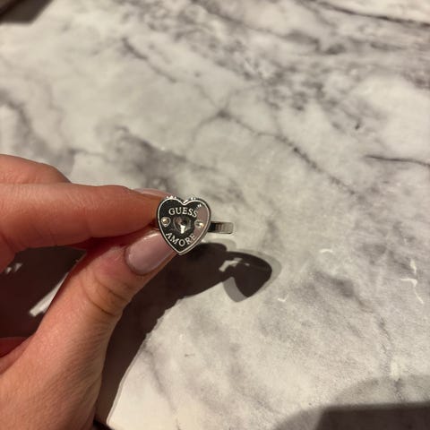 GUESS dame ring laget av rustfritt stål med en stor grønn krystall som hovedmateriale. Ingen bruksmerker. Kostet 699 ny. Str 52, ganske «vanlig» ringstr kvinne (S/M)
