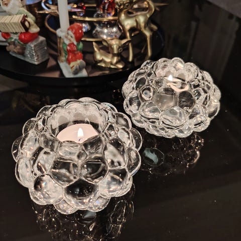 Vakker og tidløs lyslykt fra Orrefors i den ikoniske Hallon-serien. Designet er inspirert av bringebær, med myke, organiske former i klart glass som gir et nydelig lysspill når telyset er tent.