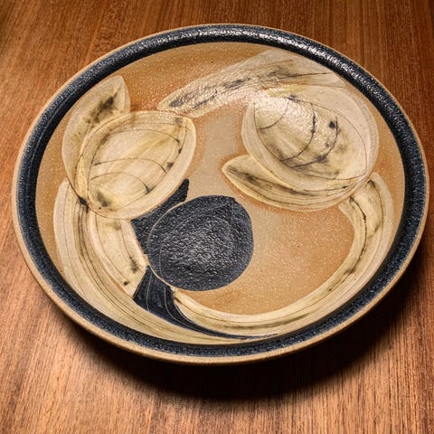 Keramikkfat m/ Håndmalt abstrakt dekor .