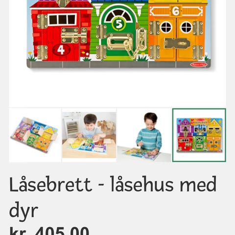 Aktivitetsbrett med ulike dører og låser, fra Sprell.