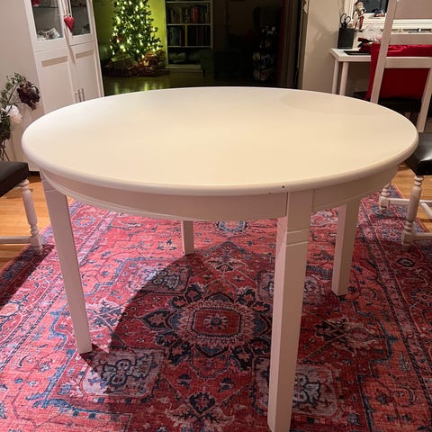 Synligt brukt spisebord fra IKEA, 110cm i diameter.