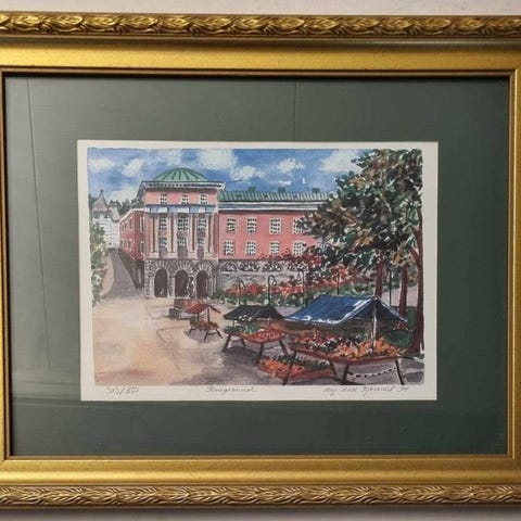 Ca. mål inkl. ramme: 70 × 50 cm.
