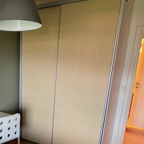 Skyvedører med skinner gis vekk mot henting. Var i huset da det ble kjøpt for snart 10år siden.