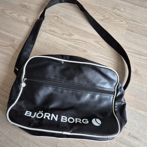 Björn Borg Sport skulderveske laget av kunstlær. Vesken har svart farge med hvite detaljer og justerbar skulderrem. Designet for unisex bruk. Vesken er ca. 38x36 i str. Er flere rom i den.