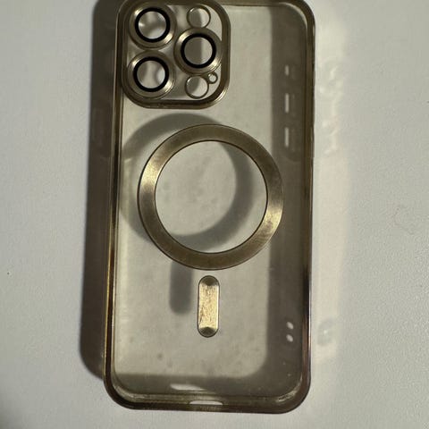 Apple iPhone telefondeksel i beige farge. Dekselet er designet for å beskytte telefonen mot riper og støt.