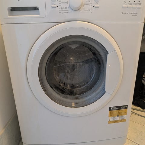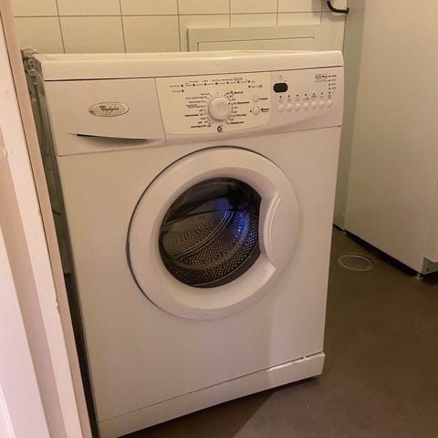 Whirlpool Frontmatet vaskemaskin. Hvitt design med frontmatet dør. Kontrollpanel med flere innstillingsvalg for ulike vaskeprogrammer gis bort. Vi har kjøpt ny med større kapasitet. Maskinen fungerer godt, men kan være litt ustabil, så må nok justeres under.