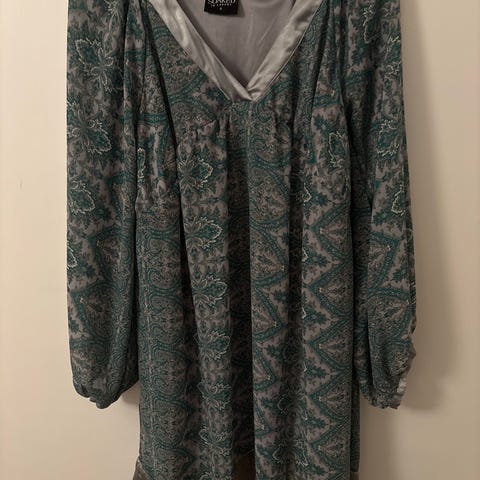 Fin grønn og prikkete omslagskjole fra Soaked in Luxury selges.