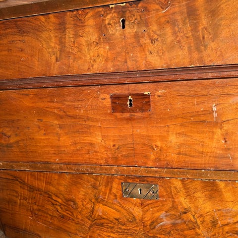 En helt nydelig trekommode med speil selges grunnet plassmangel. Den har en fin og varm trefarge. Møbelet er funnet på loppemarked. Det er noe rust på speilet og en hank falt av, tre kommode skuffer som rommer mye.