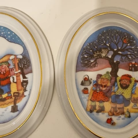 To koselige bilder med vintermotiv av Kari Grossmann. Bildene er i god stand.