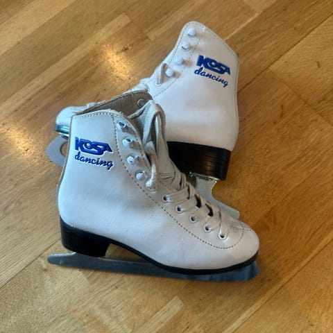 Danseskøyter i barnestørrelse 29. Skøytene er hvite og laget for barn. Egnet for ulike skøyteaktiviteter.