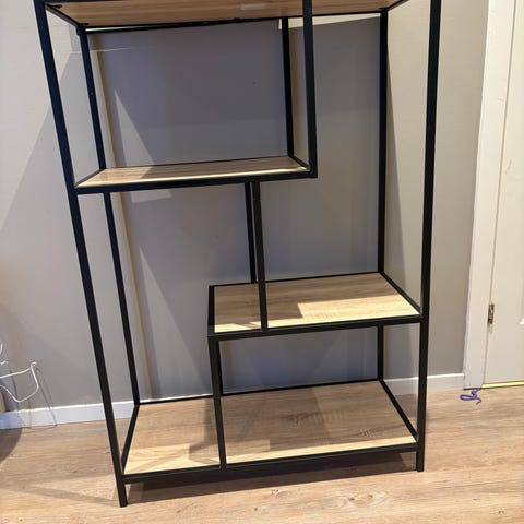 DVD / CD hylle, svart med tre nønster, altså ikkje heilt svart.