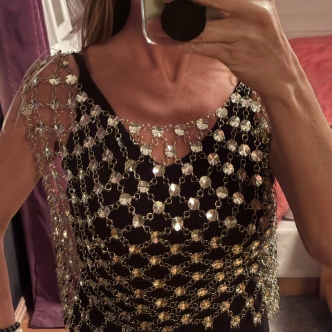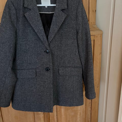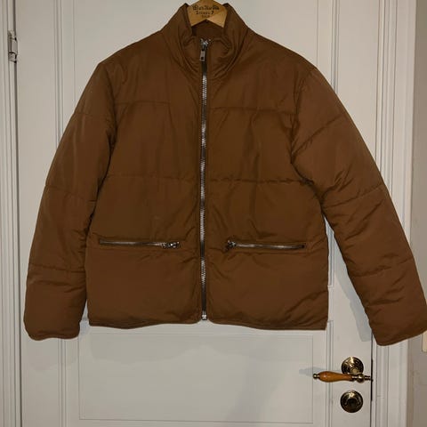 Weekday fuskepels. Kort jakke med lommer. Nydelig rødbrun farge. Størrelse M men stor i størrelsen. L: 72 cm, B: 61 cm. Fin krage. Lukkes med trykkknapper.