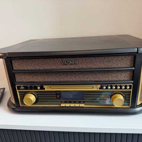 Sjelden brukt, har Bluetooth, leser CD-er, vinyl og gamle kassetter.
