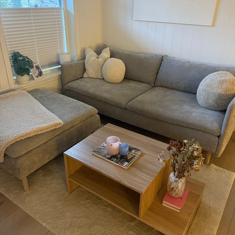 Sofaen er som ny og det er ingen flekker eller tydelige bruksmerker. Har allergivennlig/røytefri hund.