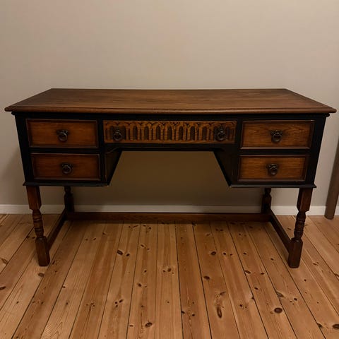 Vintage retro gammelt tre snekker møbel karakter sjarm kaffebord sidebord skrivebord spisebord