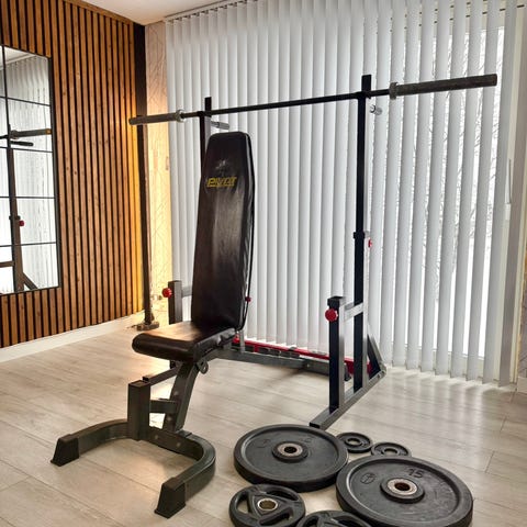 Perfekt sett for hjemmetrening – knebøy, benkpress m.m.