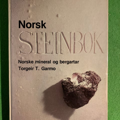 Selger en pen innbundet bok av Torgeir T. Garmo med tittelen: "Norsk Steinbok - norske mineral og bergartar".
