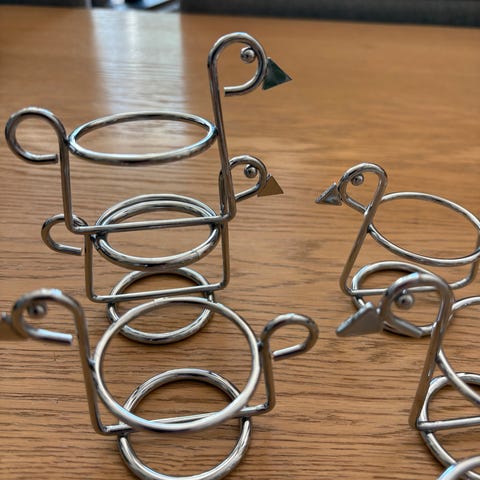 Eggeglassene er blanke i glasuren og ikke krakelert. Ett har et ørlite nagg eller et hakk i glasuren i øverste kant (se eget bilde).