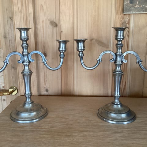 Gedigen tinn kandelaber, nå nedsatt