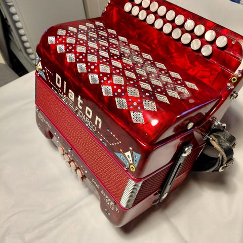 Trekkspill m/koffert. Hagstrøm Exellente 429-2/8 noen av de store bassknappene sitter fast. Selges kr 10000 eller høystbydende. Befinner seg på Kongsvinger