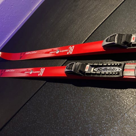 Fint brukte fjellski med stålkant og BC Rotfella binding. . Dette er smøreski. Har brukt noen ganger de med klister og glider på. Ellers er brukt med langfeller på.