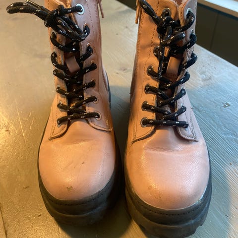 Støvlene er svarte og laget i vanntett materiale, med glidelås på innsiden for enkel påkledning. De har en robust såle som gir godt grep og stabilitet. Mye brukt, mye bruk igjen.