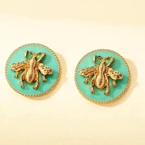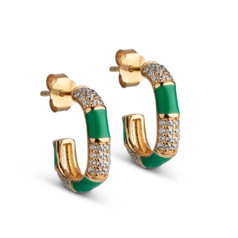 Nydelig Ikonisk ørepynt design gullbelagt med vakre grønne stener.