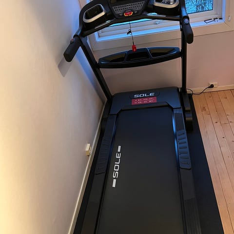 Forholdsvis lite brukt SOLE F85 tredemølle. Eldre versjon, men kun gått 187 timer og 83 mil og har lite slitasje, og alt av knapper og funksjoner fungerer.