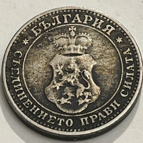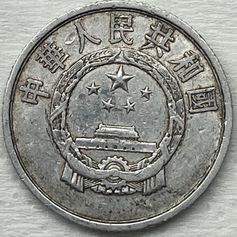 Norsk 5-kroners mynt fra 1975 med motiv av en krone og et skjold. Mynten er laget av metall og er en del av Norges offisielle myntserie.