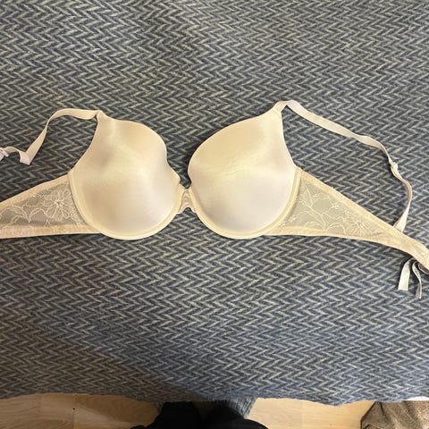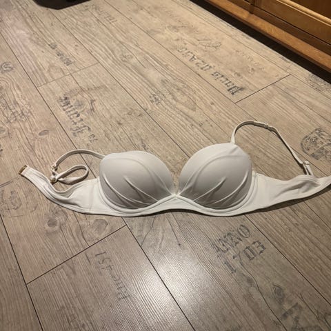 Ubrukt BH med lappen på selges. Kremfarget størrelse C 80.Det er 2 hekter bak om mulighet for å ta av stroppene og bruke sen uten.Det er antiklimaks bak og framme (sjå bilde)