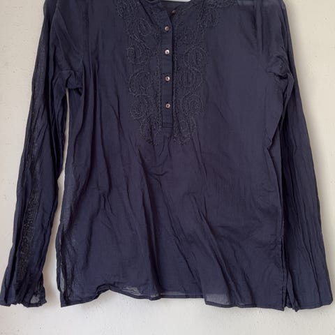 Nydelig svart bluse i satengaktig stoff! Passer M også.