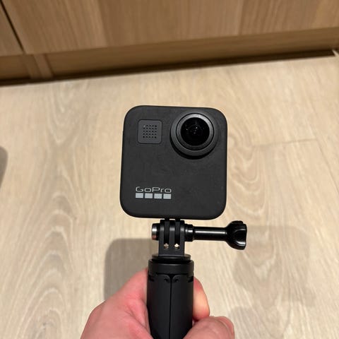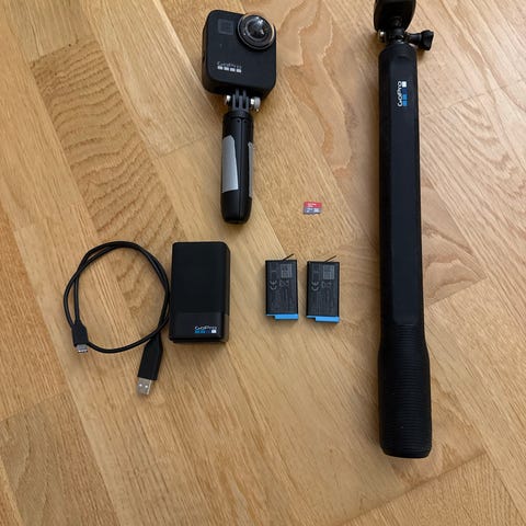 Kameraet har to linser for 360-graders opptak og en berøringsskjerm på baksiden.
