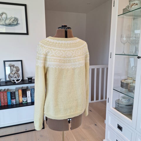 Ny og håndstrikket I Kos fra Sandnes garn mykt og litt tykkere garn.