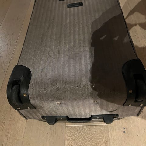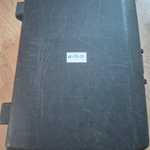 Koffert 70cm lang - 25 cm dyp og 60 cm høy (har dessverre ikke liter mål)