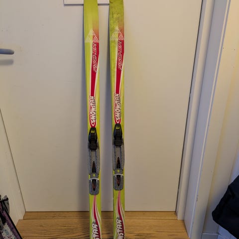 Rosa smørefrie langrennski til skilek. Den ene har en knekk inni kjernen som går at den ikke egner seg til vanlig skitur. Fronten bøyer seg mer enn den skal. Men kan sikkert brukes til skilek i hagen eller lignende. Kaster dem om ingen er interessert.