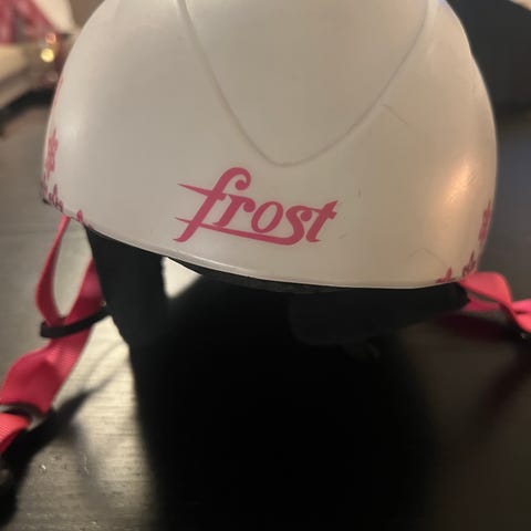 Barne hjelm Class A står det på den, hos oss brukte den barn 4/5 år gamle