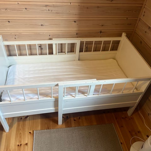 IKEA Juniorseng barneseng i hvit farge. Passer for barn og har en design tilpasset junioralder. Laget av materialer egnet for barnemøbler.